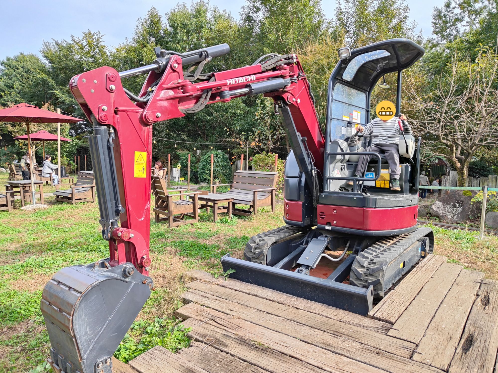 やまゆり鉄道の乗車口付近にショベルカーが展示されていて、乗車することもできて子どもたちは大喜び!