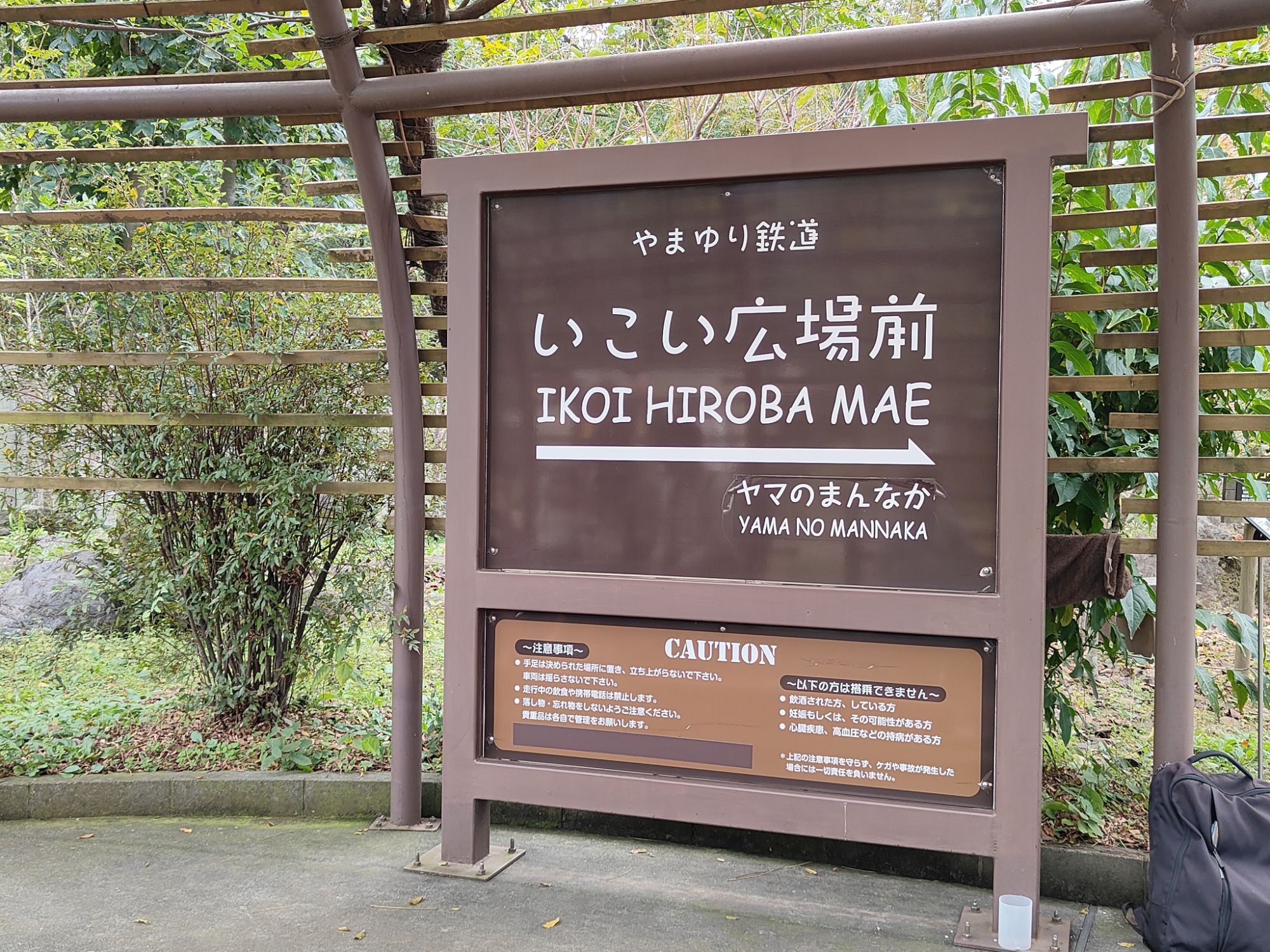 いこい広場前から車掌さんの笛が鳴り「出発進行!」。