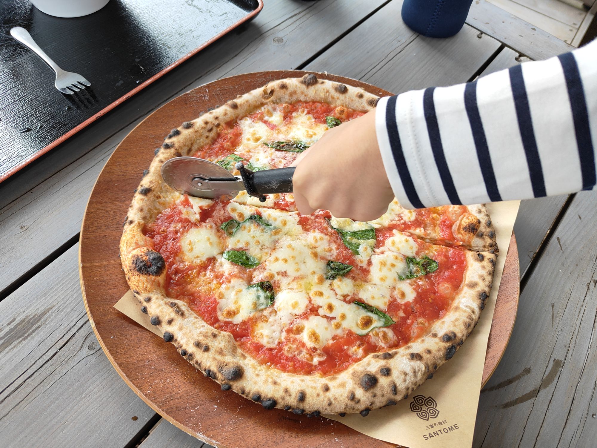 ・石窯で焼き上げるピザはアツアツで香ばしく、大人も大満足