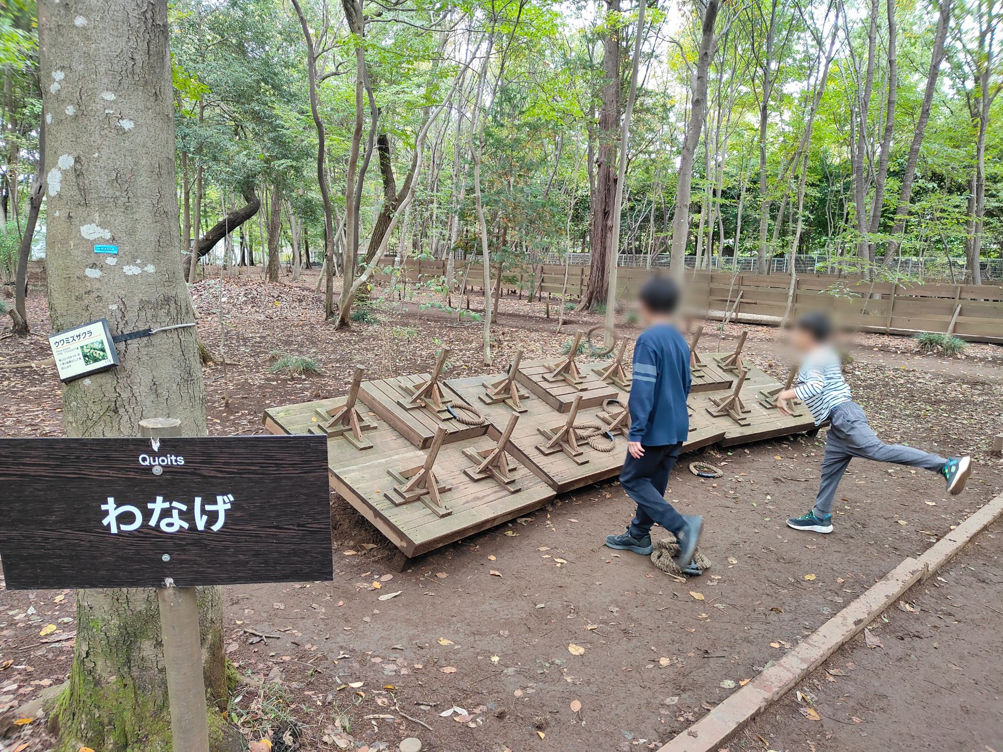 ・木漏れ日の中を歩きながら、わなげやベンチでのんびり