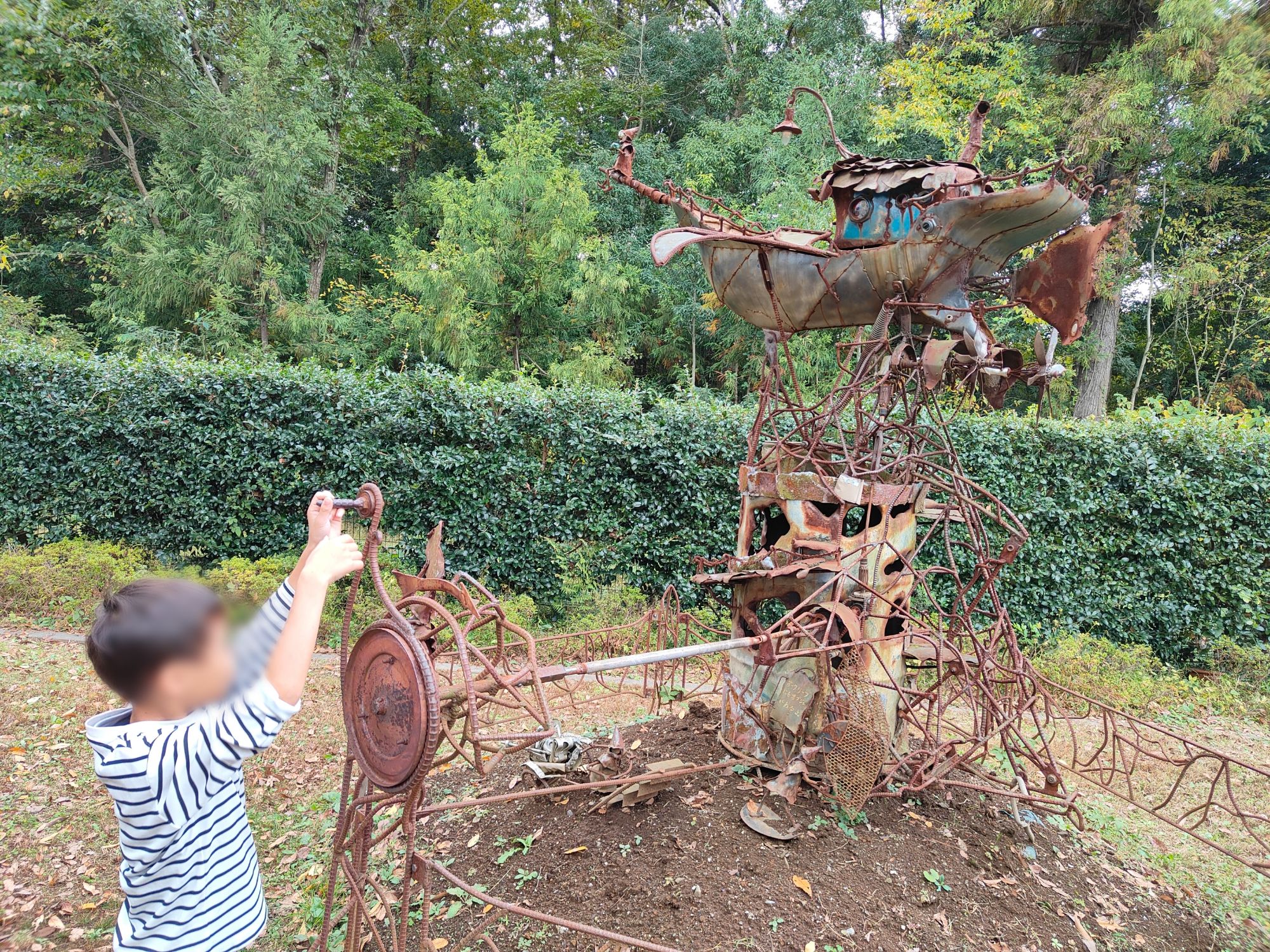 施設内には様々な箇所に廃棄物等作成されたようなオブジェが展示されていました。森の中でアートも楽しめます。
